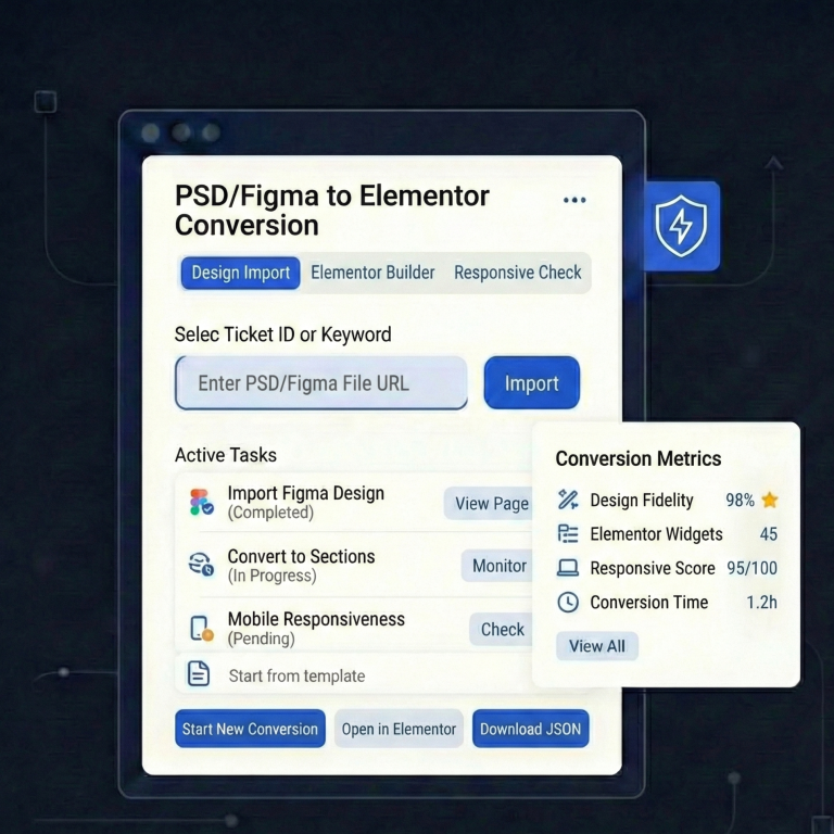 Yes. Our PSD & Figma to Elementor Conversion process focuses on pixel-perfect accuracy, ensuring the final Elementor build matches your original design layout, spacing, typography, and visuals.